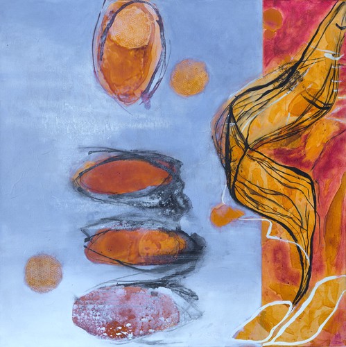 Acryl, Schelllack, Tusche und Kohle auf Leinwand